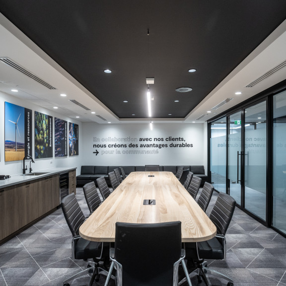 Le client souhaitait un aménagement moderne, raffiné et fonctionnel alors nos équipes ont réalisé des finitions haut de gamme, intégrant des surfaces en quartz élégantes, une ébénisterie sur mesure et des revêtements de sol de qualité supérieure, créant ainsi une ambiance à la fois sophistiquée et professionnelle. Nous avons également installé des systèmes technologiques intelligents intégrés, assurant une connectivité optimale et une efficacité opérationnelle exemplaire. Nous avons conçu et construit des espaces diversifiés, incluant des zones de détente, des bureaux privés et des espaces de travail collaboratifs, favorisant ainsi un équilibre parfait entre productivité et confort.