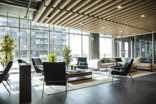 Cette structure de bois et de métal a permis de réaliser un stationnement souterrain d’une hauteur totale de 15 pieds répartis sur deux étages, sur lequel s’élèvent les bâtiments multi-étages.