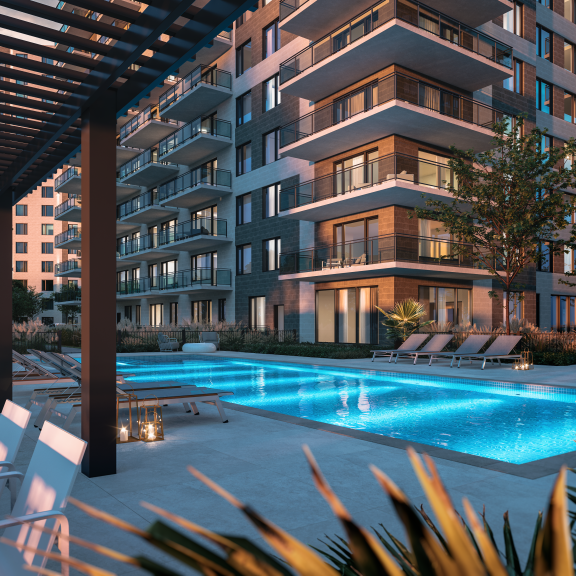 La phase 6 du complexe comporte une tour de 16 étages totalisant 115 condos, dont 5 penthouses. L'immeuble dispose aussi d'un garage et de casiers d'entreposage, d'un espace commun haut de gamme agrémenté d'un lobby avec foyer, d'un chalet urbain avec bar et cuisine, ainsi que d'un gymnase équipé.